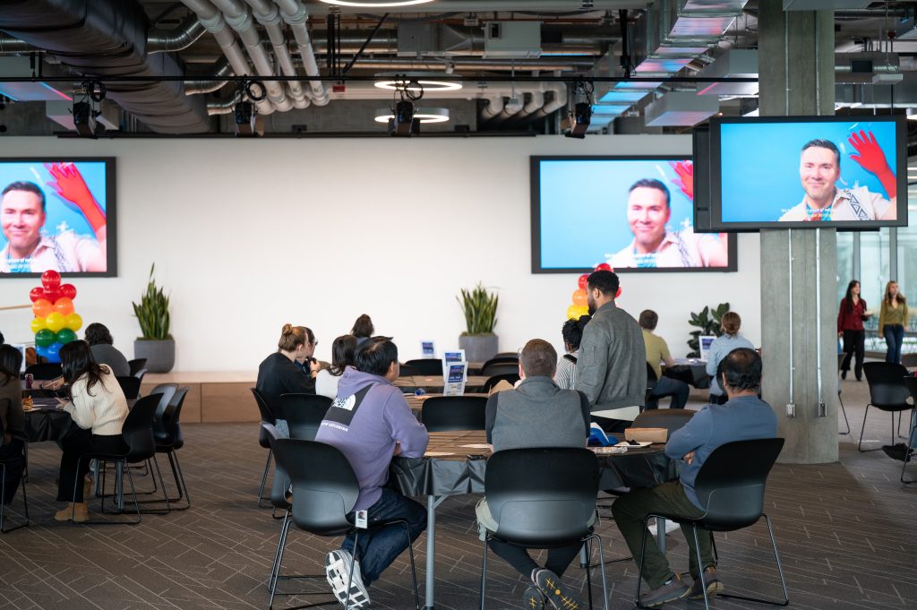 El encuentro comenzó con la proyección de Somos Entre Hermanos, un cortometraje que refleja no solo lo que hacemos, sino quiénes somos como organización. Tras la proyección, nuestro Director Ejecutivo, Edgar Longoria, compartió un mensaje sobre la importancia de la visibilidad, la representación y las alianzas que fortalecen a la comunidad LGBTQ+ Latine del estado de Washington.